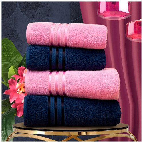 Набор из 4-х полотенец Harmonika Цвет: Темно-Синий, Персиковый (50х80 см - 2 шт, 70х130 см - 2 шт)
