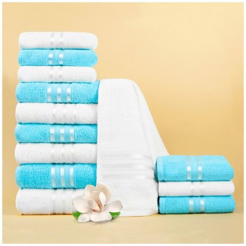 Dome Набор из 12 полотенец Harmonika Цвет: Белоснежный, Бирюзовый 33х50 см - 6 шт, 50х80 см - 4 шт, 70х130 см - 2 шт