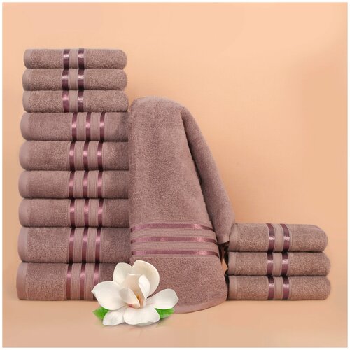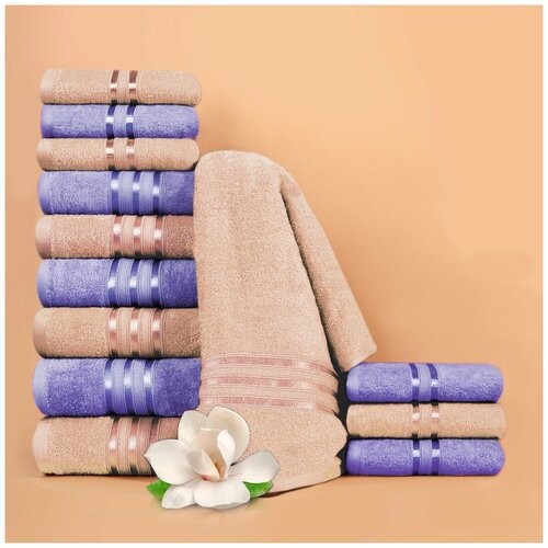 Dome Набор из 12 полотенец Harmonika цвет: бежевый, сиреневый (30х50 см - 6 шт, 50х80 см - 4 шт, 70х130 см - 2 шт) br49617