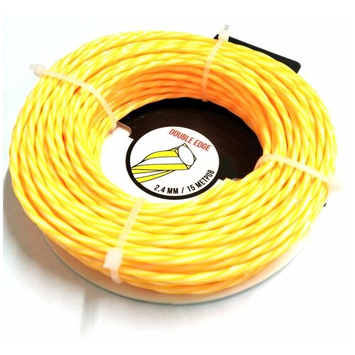 Леска триммерная (корд) Double edge 2,4 мм x 15 м (двойной режущий край, витой квадрат, двухкомпонентная)