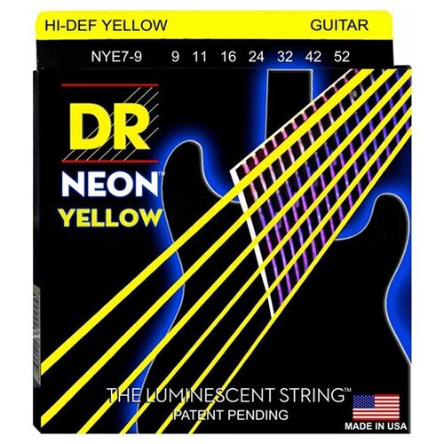 NYE7-9 Neon Yellow Комплект струн для 7-струнной электрогитары, никелированные,с покрытием, 9-52, DR