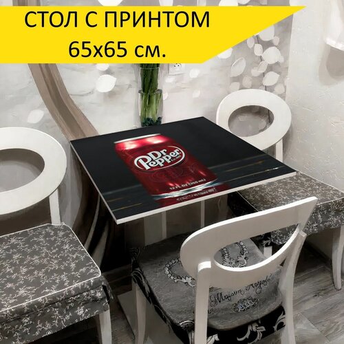 Стол "Газировка, dr pepper, сода может", 65x65 см. Кухонный, квадратный, с принтом.