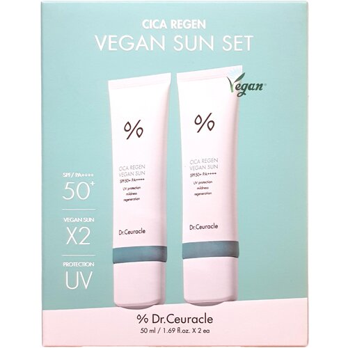 Набор Dr. Ceuracle Cica Regen Vegan Sun - Солнцезащитный веганский крем с центеллой SPF 50+ PA++++ , 2 крема по 50 мл