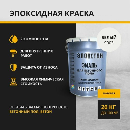 "Эпокстон" Двухкомпонентная эпоксидная краска по бетонному полу 2 в 1, по бетону, белый 18 кг