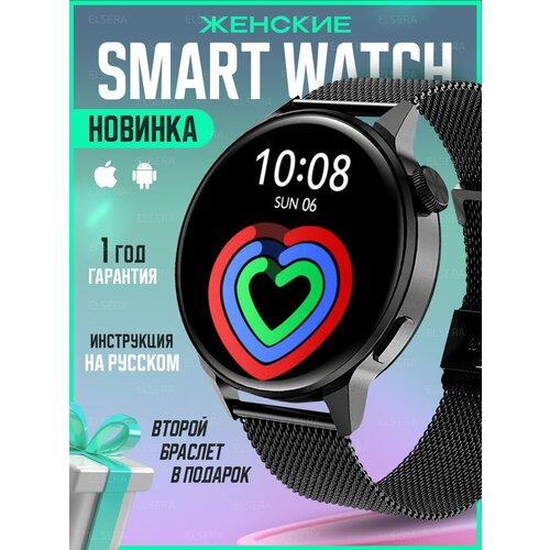Умные смарт часы женские круглые наручные шагомер фитнес браслет