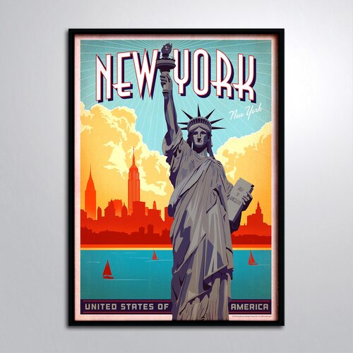 Постер в раме/Постер для интерьера/Винтажный плакат Нью Йорк США New York Статуя Свободы