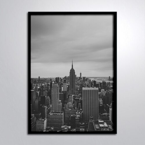 Постер в раме/Постер для интерьера/Плакат интерьерный черно-белый с архитектурой Эмпайр Билдинг Нью Йорк