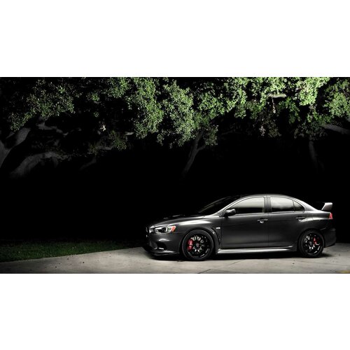 Постер на экокоже 50x70 LinxOne "Черный Mitsubishi Lancer Evo X" интерьер для дома / декор на стену / дизайн