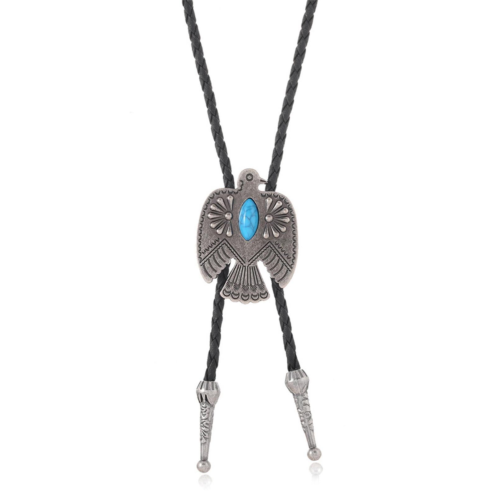 Vintage Eagle Turquoise Pendant Necklace Long Bolo Chain For Men Women Zinc Alloy PU Cord Jewelry Accessory A