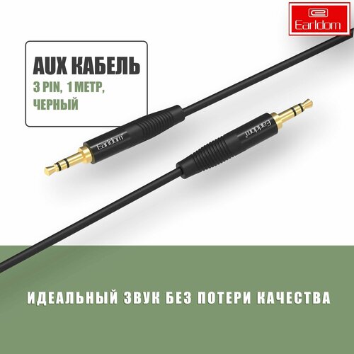 Aux кабель Jack 3.5mm 3 pin 1м / Earldom AUX48 / аукс кабель в машину, для наушников, аудио кабель Джек 3.5мм, черный
