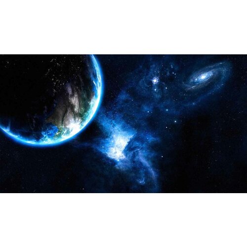 Картина на холсте 60x100 LinxOne "Stars oceans galaxy earth light" интерьер для дома / декор на стену / дизайн
