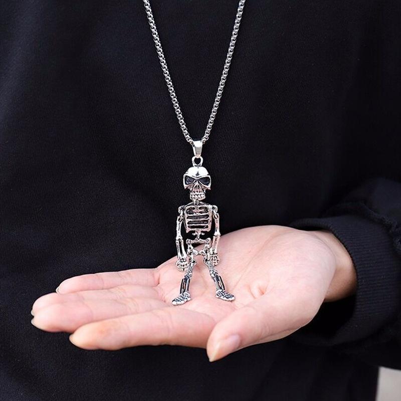 Хип-хоп Титановая сталь Скелет Кулон Длинная цепь