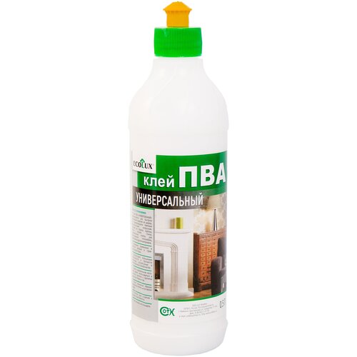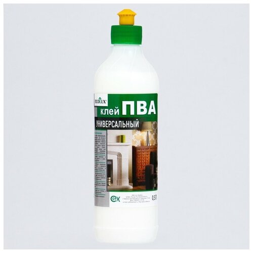 Клей ПВА, Ecolux, клей для бумаги, клей для стекла, клей для ткани, для кожи, бытовой клей, грунтовка, пропитка для дерева, 500 мл