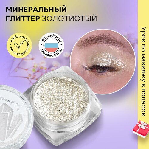 Ecomake Био-глиттер золотистый, для сияющего макияжа глаз, не скатывается, сохраняет стойкость весь день, натуральный, природного происхождения.