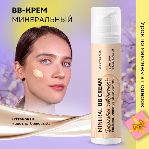 Ecomake Минеральный BB крем для лица тон 01, тональная основой для макияжа, шелковистая текстура, скроет несовершенства 50 мл расход: 3 месяца