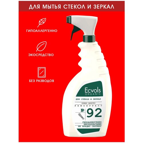 Средство для мытья стекол и зеркал Ecvols №9 с эфирным маслом (лемонграсс), 750 мл