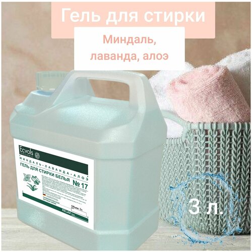 ЭКО гель для стирки белья №17 смягчающий с эфирным маслом миндаля, лаванды и алоэ, жидкий порошок,3 л