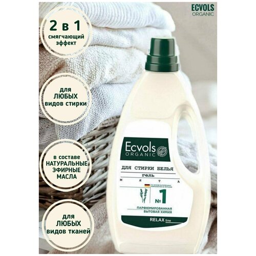 Органический гель для стирки Ecvols №42 смягчающий с эфирным маслом апельсина и мяты, 3 л