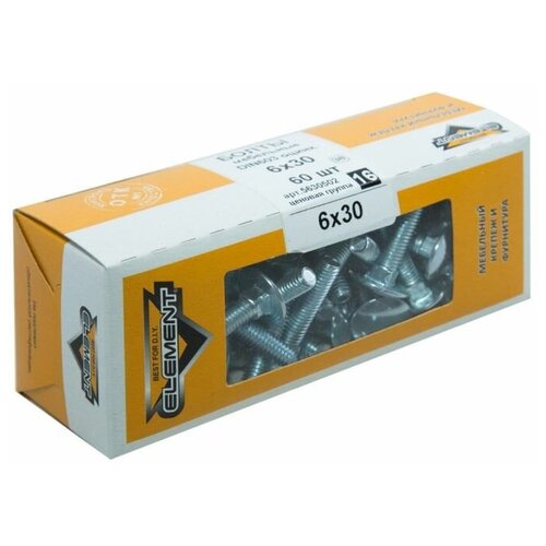 Болт мебельный Element 102880, 6x30 белый цинк, DIN 603, 60 шт
