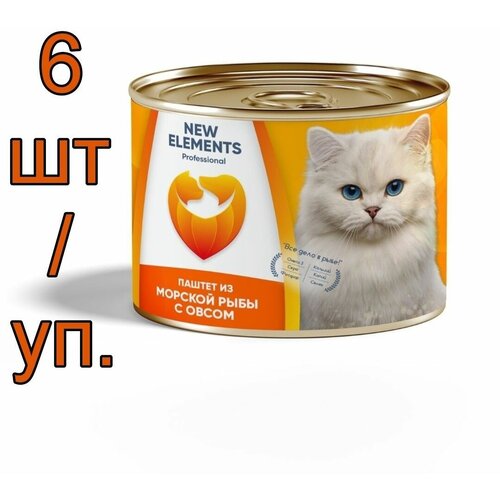 NEW ELEMENTS Professional Консервы для кошек "Паштет из морской рыбы с овсом "240 г (6 шт.)