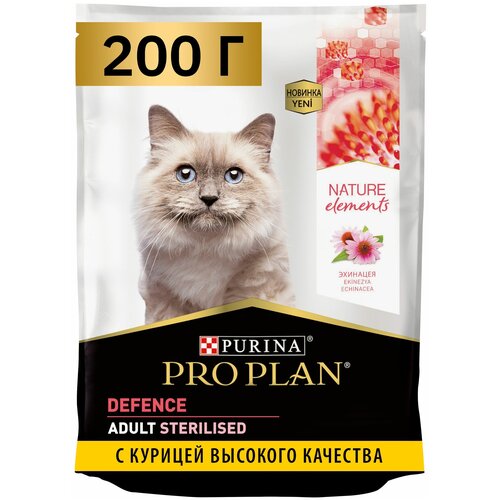 Сухой корм Pro Plan Nature Elements для взрослых стерилизованных кошек и кастрированных котов, с высоким содержанием курицы, 200 г х 1 шт
