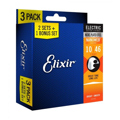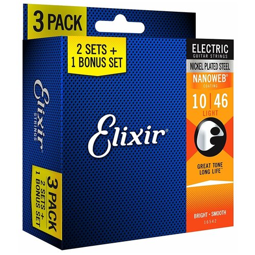 NANOWEB Cтруны для электрогитары, Light, 10-46, 3 комплекта, Elixir