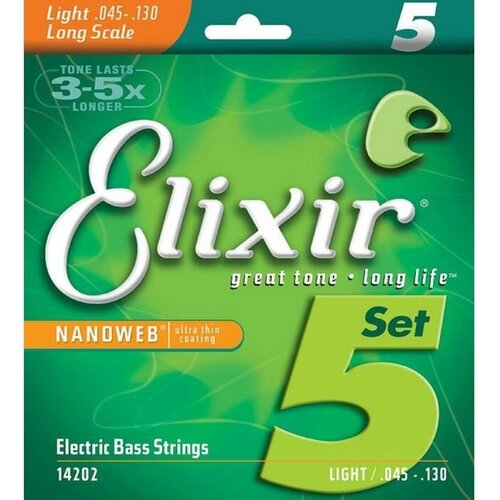 Elixir 14202 NanoWeb струны для 5-струнной бас-гитары Light 45-130