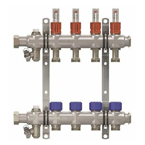 Коллекторная группа Elsen, 1, 6 контуров, размер отвода-3/4, с вентилями и расходомерами, нержавеющая сталь