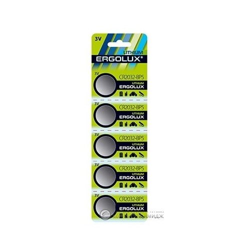 Ergolux.CR2032 BL-5 (CR2032-BP5, батарейка литиевая,3V) (5 шт. в уп-ке)