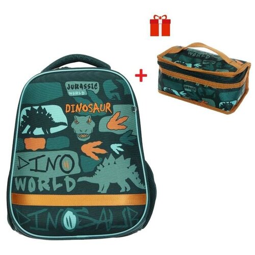 Hatber Рюкзак каркасный 38 х 29 х 15 см, EVA-материал, с термосумкой, Hatber Ergonomic light, Dino World, зелёный NRk_60020