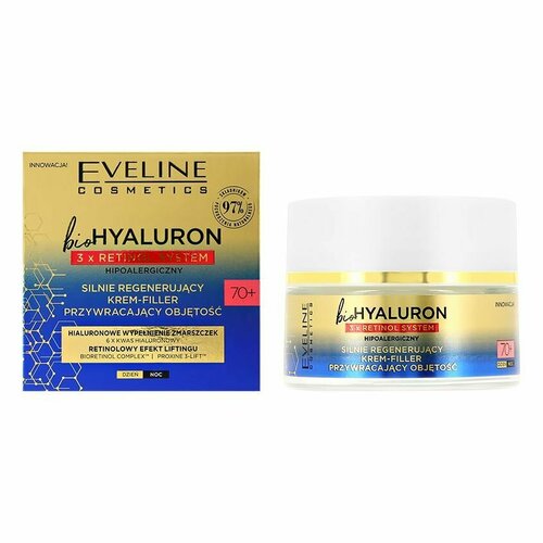 Крем Eveline Hyaluron Clinic B5 70+ Регенерирующий активно восстанавливающий крем - дневной и ночной 50 мл.
