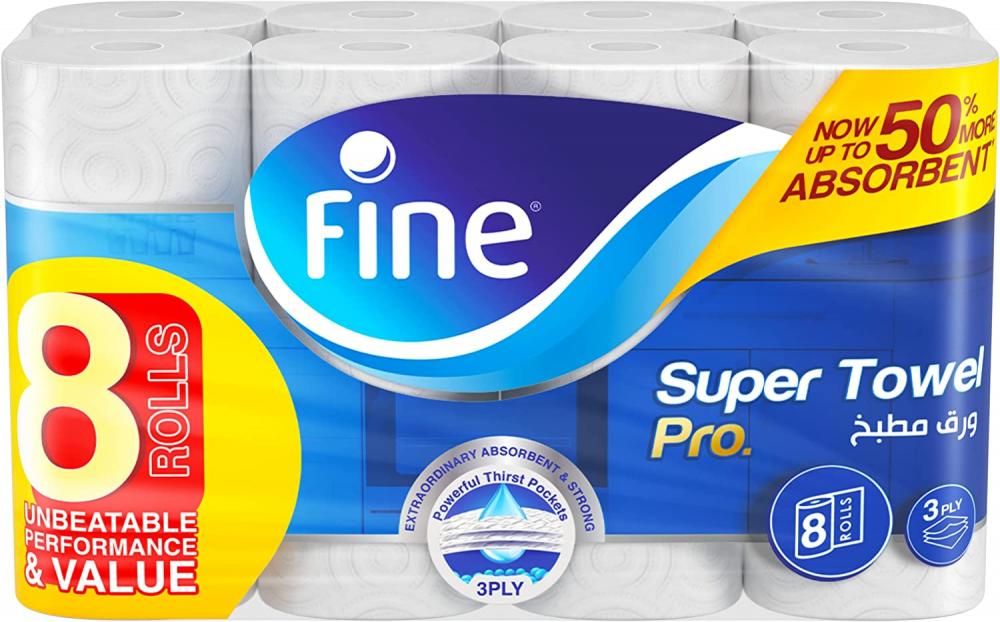 Fine / Paper towels, Super towel pro, 60 sheets x 3 ply, 8 rolls