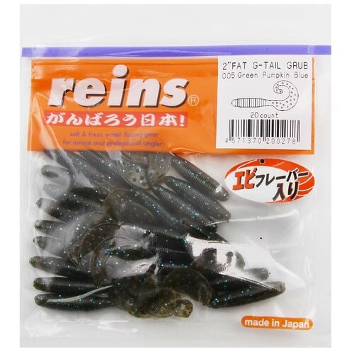Приманка силиконовая Reins Fat G-Tail Grub 2 (упак. 20 шт.) / 005 - Green Pumpkin Blue