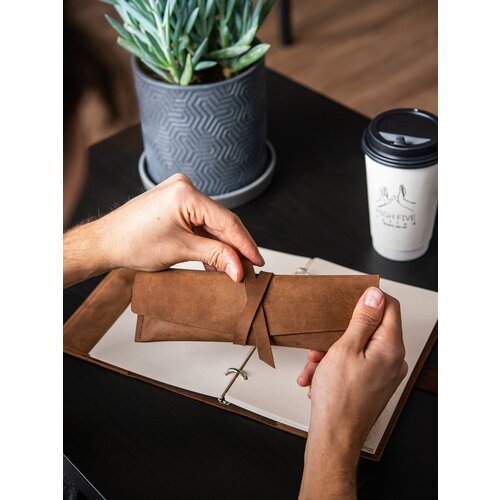 Кожаный ежедневник FILIN GOODS А6 на кольцах со сменным блоком светло-коричневый