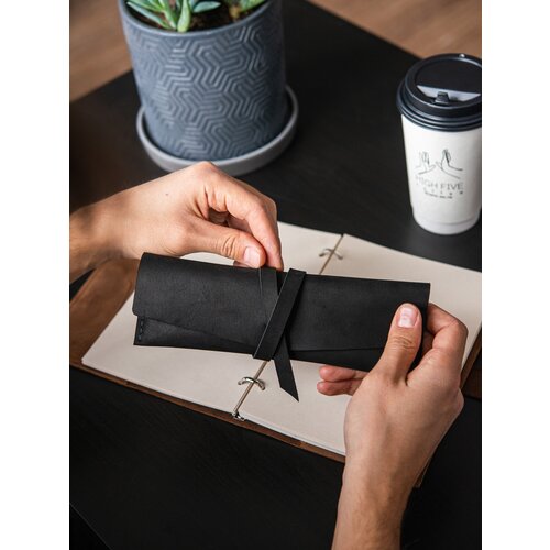 Пенал FILIN GOODS из натуральной кожи черный/Кожаный пенал/Косметичка