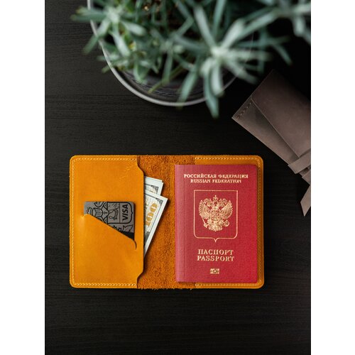 Обложка , натуральная кожа, отделение для денежных купюр, отделение для карт, отделение для паспорта, подарочная упаковка, желтый
