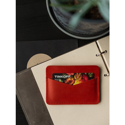 Кредитница натуральная кожа, 3 кармана для карт, красный
