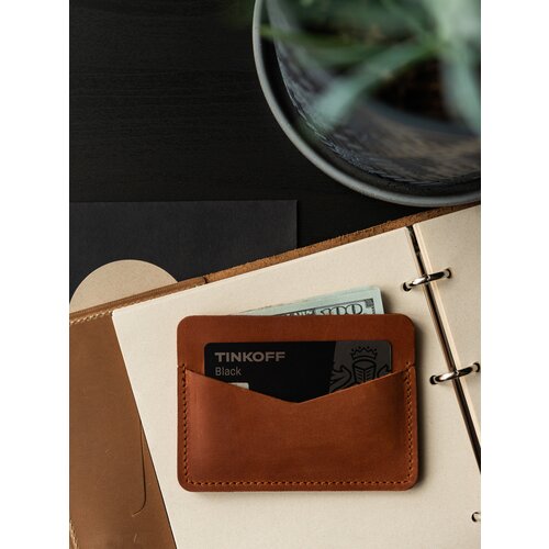 Кредитница натуральная кожа, 3 кармана для карт, коричневый