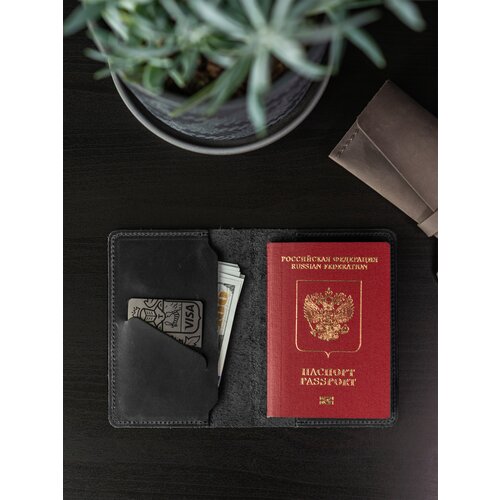 Обложка , натуральная кожа, отделение для денежных купюр, отделение для карт, отделение для паспорта, подарочная упаковка, черный