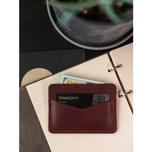 Кредитница натуральная кожа, 3 кармана для карт, бордовый