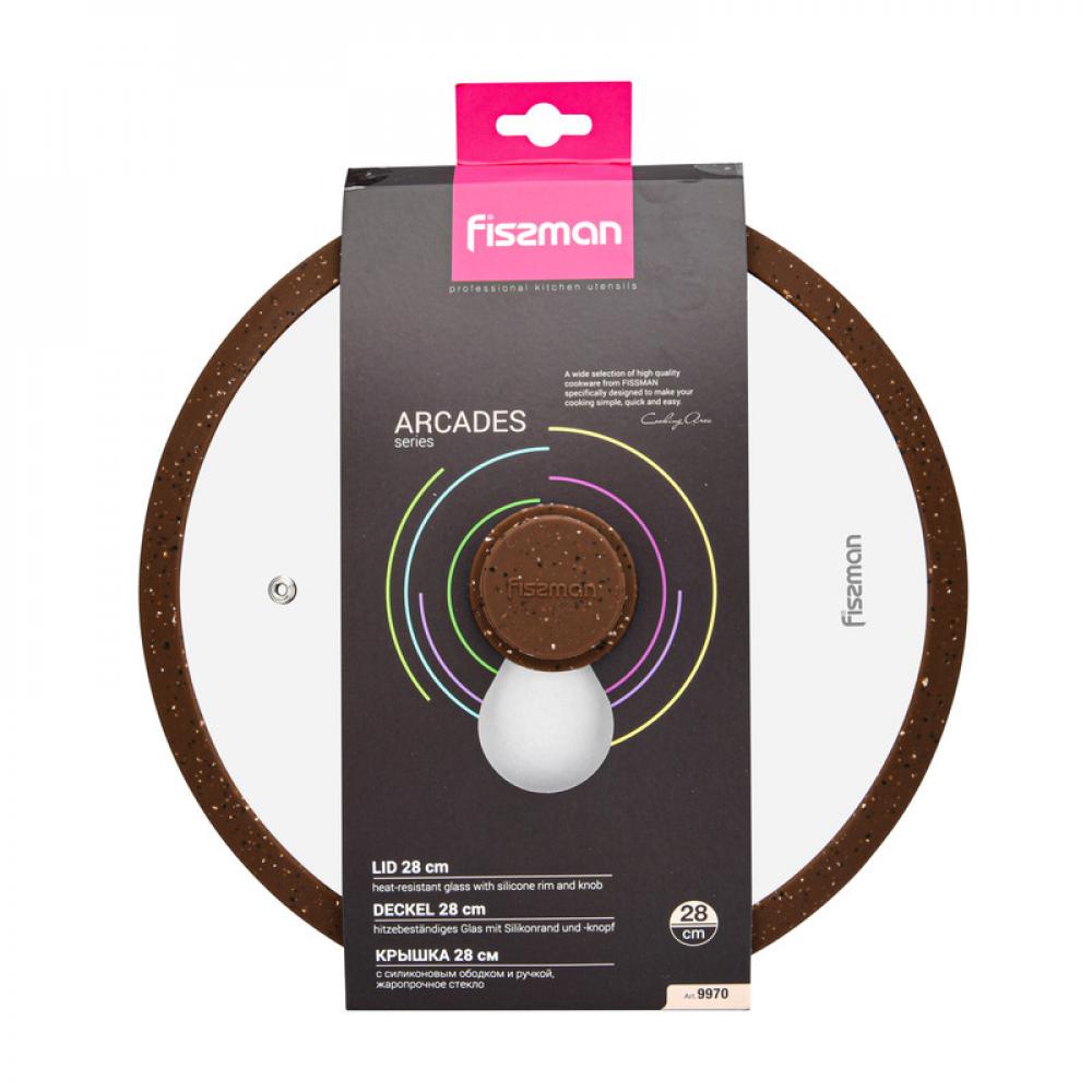 Fissman Glass Lid 28cm Arcades With Marble Silicone Rim Brown