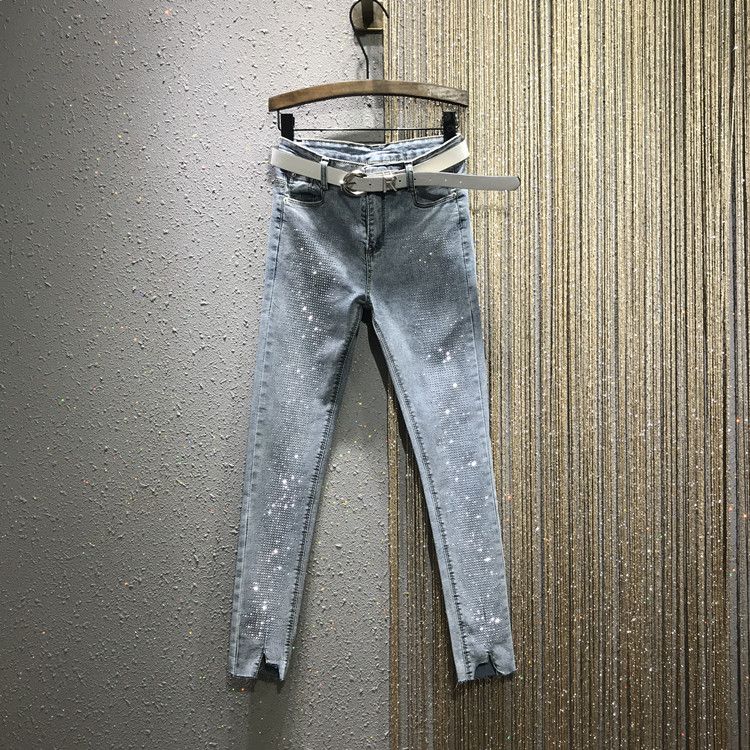 2022Весна и лето Новые джинсы с высокой талией Женские тощие лодыжки длина Slim-Fit Похудение и модное горячее сверление Прилив Нерегулярный