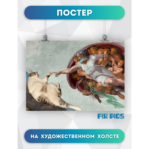 Постер интерьерный на стену для дома в офис, постеры для интерьера на холсте Сотворение Адама АРТ с котиком 50х70 см