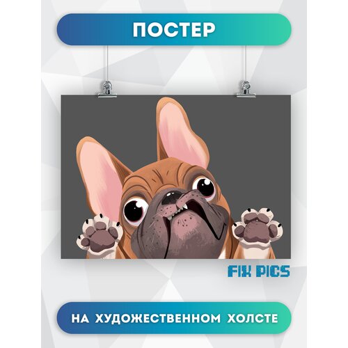 Постер интерьерный на стену для дома в офис, постеры для интерьера на холсте Французский будьдог прикольный арт 50х70 см