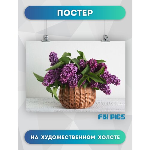 Постер интерьерный на стену для дома в офис, постеры для интерьера на холсте Цветы сирень, красивый букет сирени в корзине 30х40 см