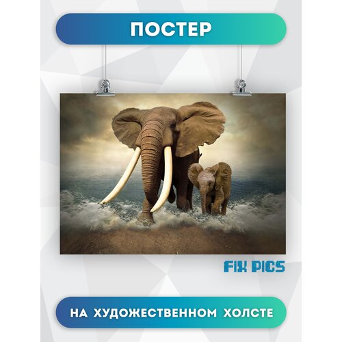 Постер интерьерный на стену для дома в офис, постеры для интерьера на холсте Слоны, море, семья слонов 40х60 см
