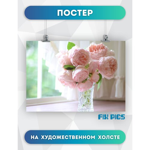 Постер интерьерный на стену для дома в офис, постеры для интерьера на холсте нежные пионы в вазе красивый букет 40х60 см