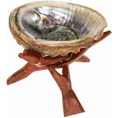 Натуральная морская раковина мексиканский "Абалон" MEDIUM с деревянной подставкой COBRA