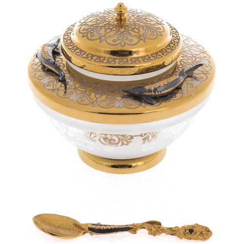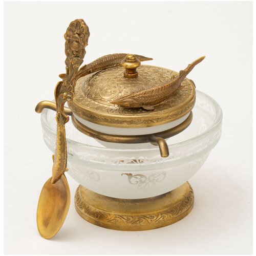 Икорница "Белужья" позолоченная (закрытая емкость для льда)