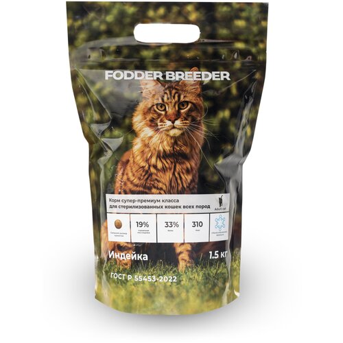 Сухой корм супер премиум класса FODDER BREEDER для стерилизованных кошек всех пород с идейкой 1,5 кг